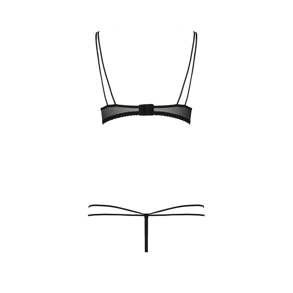 A set of PASSION brand made of elastic satin and tulle. Open bra and thongs decorated with eyelets give the whole an original, very sexy character. Created for women who are aware of their wonderful strengths and body.